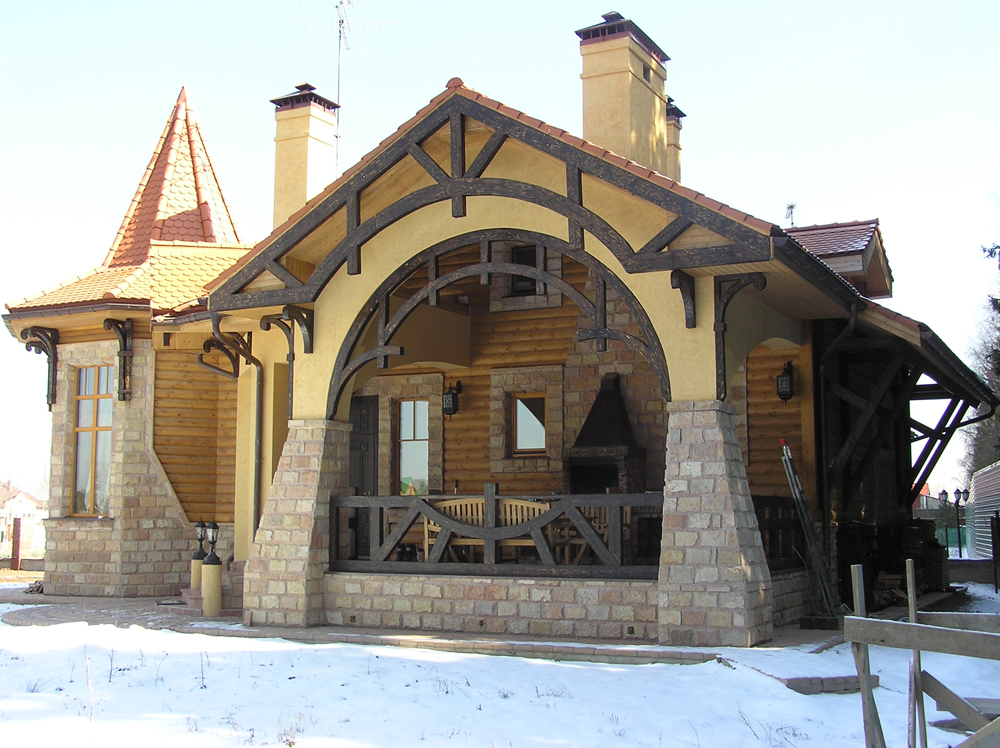 Наружная отделка стен: Натуральный или искусственный камень , белая штукатурка