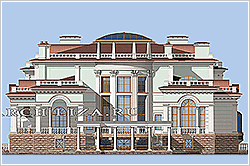Наружная отделка -- цоколь: натуральный камень, 1 - 2 этажи: натуральный камень, декоративная фасадная плитка, декоративная штукатурка, мозаичная плитка