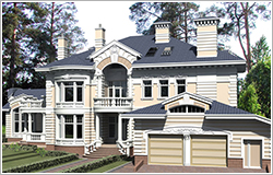 Фундаменты: монолитные ленты Стены: кирпичные с утеплителем, толщ. 640 мм. Перекрытия: монолитные ж/б Кровля: скатная, мансардная; покрытие - гибкая или металлочерепица Фасады: натуральный камень, цветная штукатурка; детали: белая штукатурка