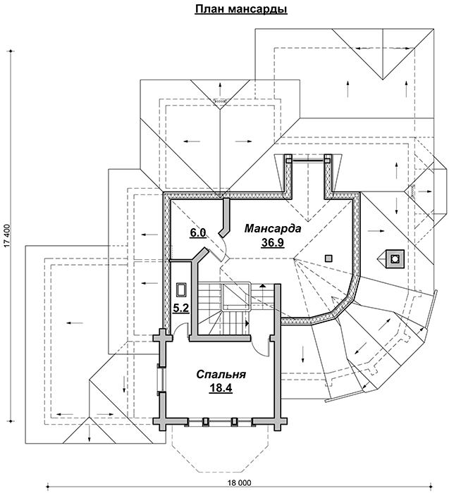 Кровля -- скатная, мансардная (утеплённая), с деревянными стропилами
